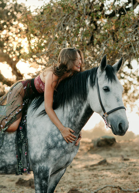 We offer a select few of our horses for photography sessions. Bring your own photographer for a 1 hour session with the horse of your choice as the co-star to your shoot. Sessions start at $300 for a one-hour photography session. Included in that price is a 40 minute meet and greet with the horse of your choice before the session. We go over common poses as well as building your confidence around the horse before the shoot. On the day of the shoot, the horse of your choice will get a bath and a thorough grooming so they are squeaky clean for you during your shoot. Our horses are target-trained to help photographers get the perfect shot. During your shoot I will have the horse on a long line, so all you have to do is pose. This is for the safety of everyone involved including the horse.